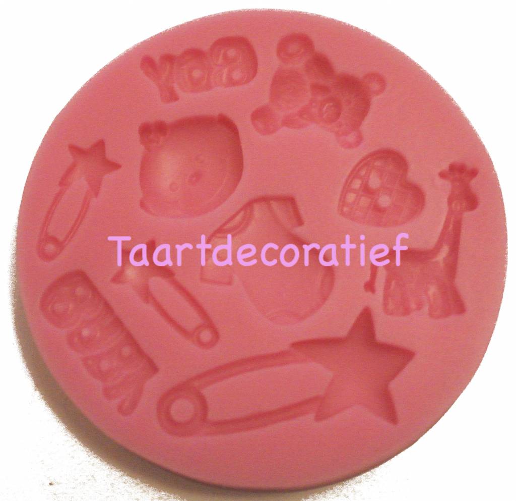 Gebruik de mal om gedetaileerde baby assecoires te maken. Heel leuk voor op een taart met een babyshower / geboorte thema. Door de extra details maakt het de taart helemaal af en geeft het een professionele look.