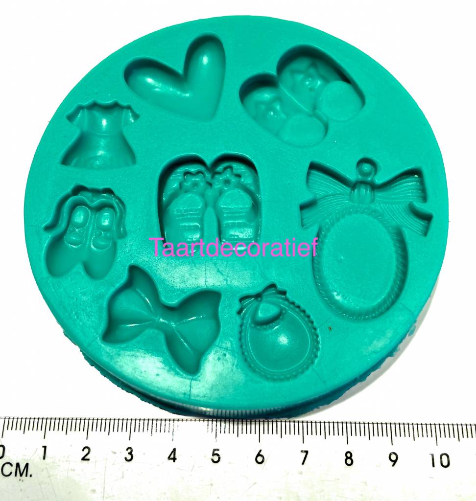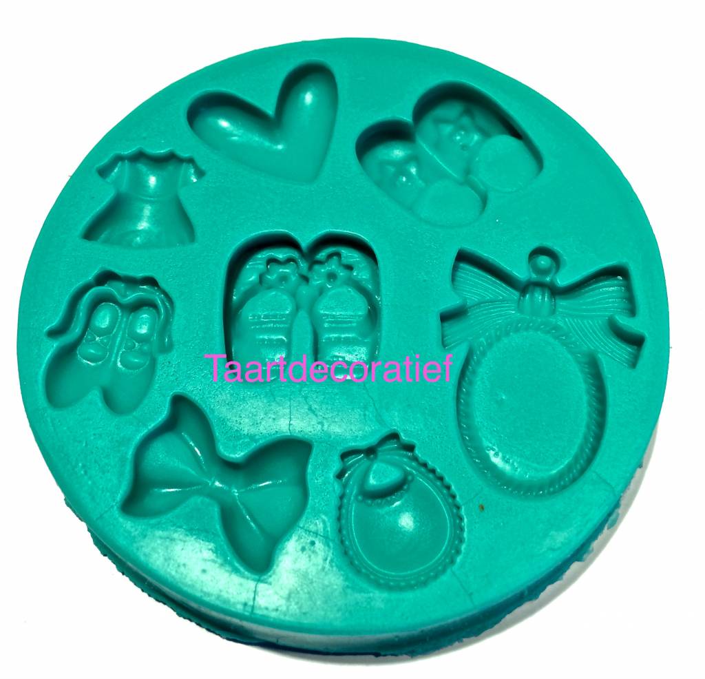 Gebruik de mal om gedetaileerde baby assecoires te maken. Heel leuk voor op een taart met een babyshower / geboorte thema. Door de extra details maakt het de taart helemaal af en geeft het een professionele look.