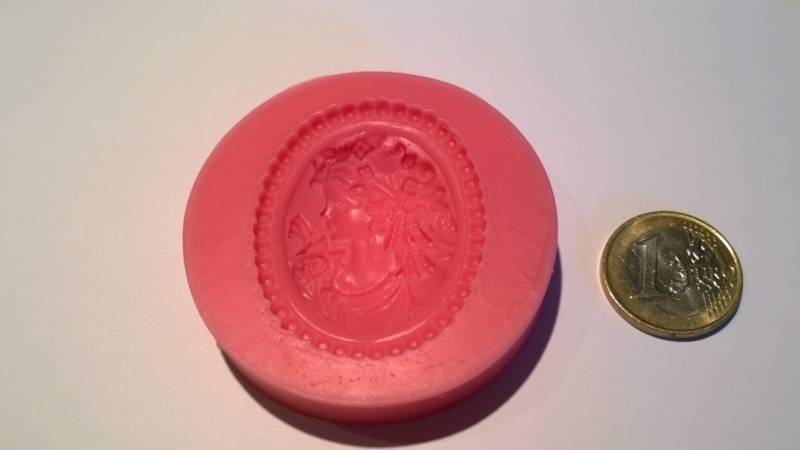 Gebruik de mal om eenvoudig een mooie camee afbeelding op je taart te maken. Omdat het een 3D mal is geeft het een heel echt effect. Het mooiste is om 2 kleuren te gebruiken om een echt camee effect te creeeren.