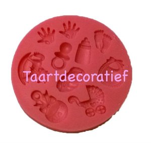 Leuke mal om je taart of cupcakes te decoreren met baby accesoires