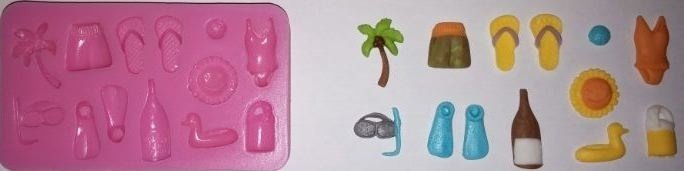 Gebruik de mal om gedetailleerde strand accessoires te maken. Heel leuk voor op een taart met een strand thema. Door de extra details maakt het de taart helemaal af en geeft het een professionele look.